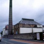 StiringからFalkirkへはバスで30分程。そろそろ到着かなと思ったとき、高い煙突と蒸留所らしき建物が見えてきた。でも何か様子がおかしい。バスを降りて戻ってみると取り壊し工事の真っ最中だった。よく写真で見た道路脇のウァームタブは取り外され、スティルからのパイプが残っているのみ。