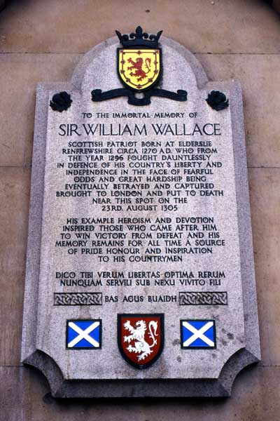 スコットランドで捕らえられ、ロンドンに連行されたWilliam Wallaceはロンドン塔に収監された。そして形式だけの裁判を受け、四つ裂きの刑と決まった。その後、London市内を引き回された後、公開処刑場で処刑された。