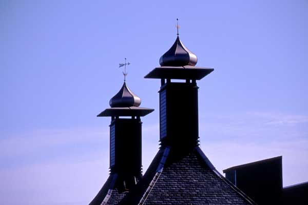 スコットランドの蒸留所で最も印象的な建物はモルトキルン。現在よく見られる形状のものは19世紀末に建築家、Charles Doigによってデザインされた。