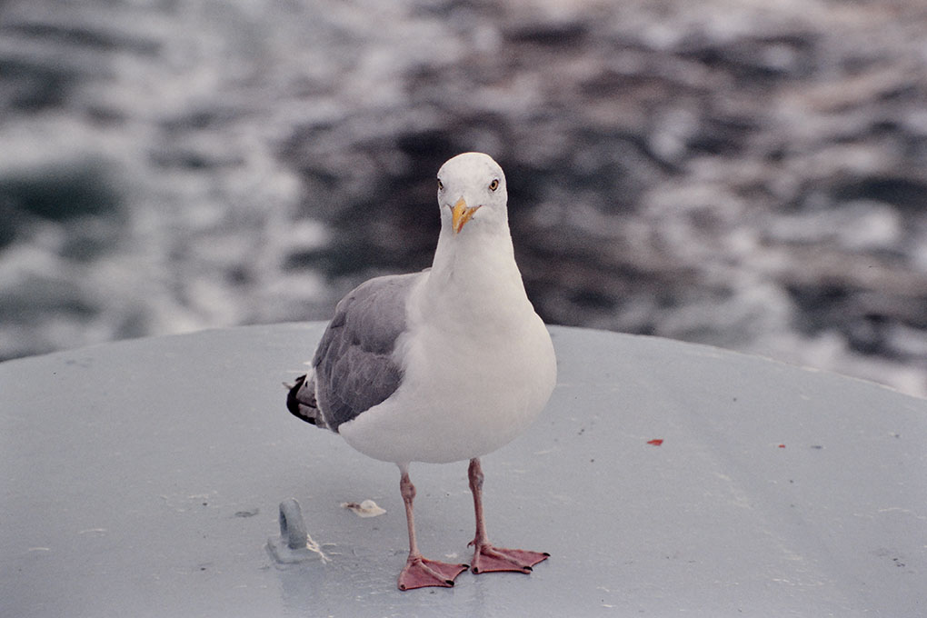 前回同様、カモメたちがフェリーについて飛ぶ。そして中には船に降りるのもいる。これならば楽に移動できる。