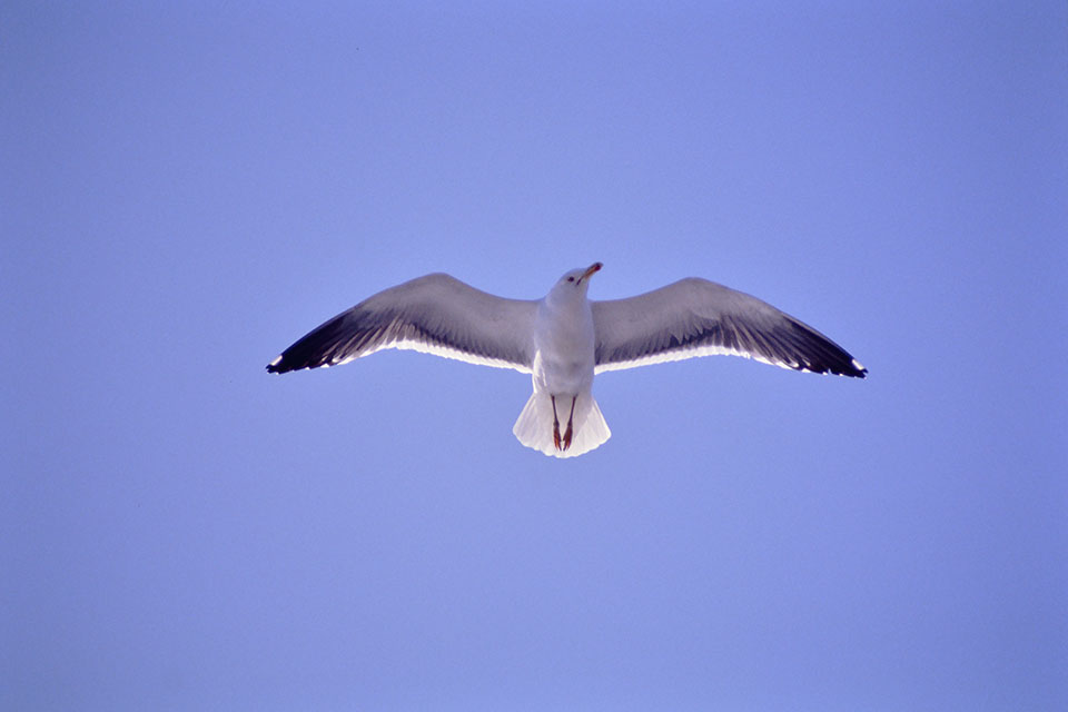 私はデッキに出て望遠レンズを構える。ふと上を見上げるとどこからか飛んできたカモメがホバリングしていた・・・いや、私たちが動いているので静止しているように見えただけだった。