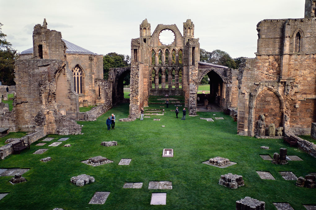Elgin Cathedral was abandoned at the time of the Scottish Reformation in 1560. After that, a part of cathedral was removed by a man of power and collapsed by natural disaster.
