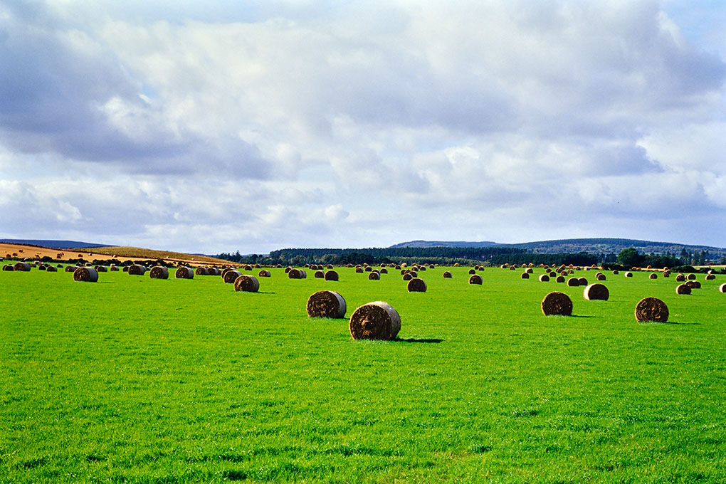 ようやく本日の予定が終了。Benriach蒸留所近くのバス停でElgin行のバスを待つ。天気も回復し、蒸留所の反対側にはスコットランドらしい牧草地が広がる。