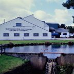 Aberlourの町から南へ1.5km程にあるGlenallachie蒸留所は1967年創立の新しい蒸留所。牧草地の多いこの辺りの雰囲気と調和のとれた建物がいい感じ。