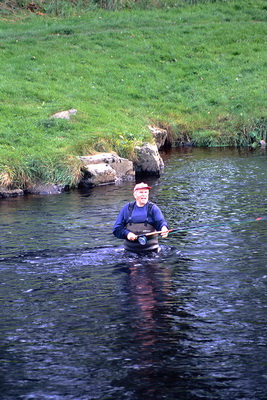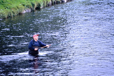 荷物を宿に置いて、川沿いを散策。釣りの名所らしく川の中に立つ釣り人。