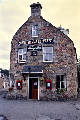 メインストリートから少し川の方向に入った所にある"The Mash Tun"。Aberlourで有名なPub。