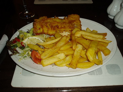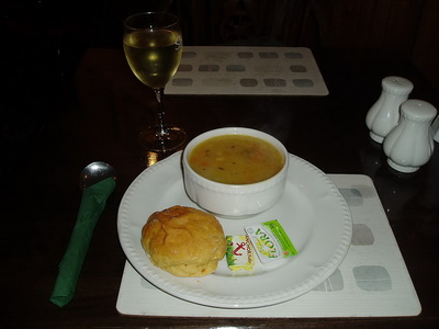 夕食はAberlour Hotelのカジュアルダイニングで本日のスープとハドックのフライ。